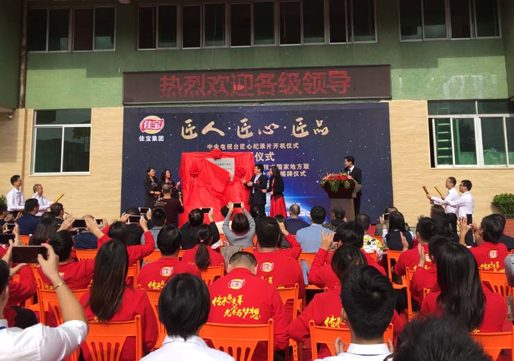 2017年11月19日,一個勢必會被載入佳寶集團史冊的事件——佳寶央視《匠心》欄目組紀錄片開拍儀式順利舉行。《匠心》欄目組在全國各行業遴選優秀企業,將中國企業從幕后推向臺前,更好塑造中國品牌。此前佳寶集團入選中央電視臺《匠心》欄目企業,體現了《匠心》欄目對佳寶匠心傳承和創新精神的認可,對佳寶集團“良心承諾制良品”的經營理念的贊賞。
