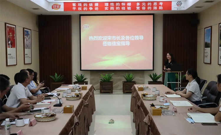 調(diào)研期間,在佳寶集團楊婉如女士陪同下領(lǐng)導(dǎo)們參觀了公司產(chǎn)品文化墻,了解佳寶集團的產(chǎn)品、文化、發(fā)展歷史以及未來企業(yè)發(fā)展方向情況。